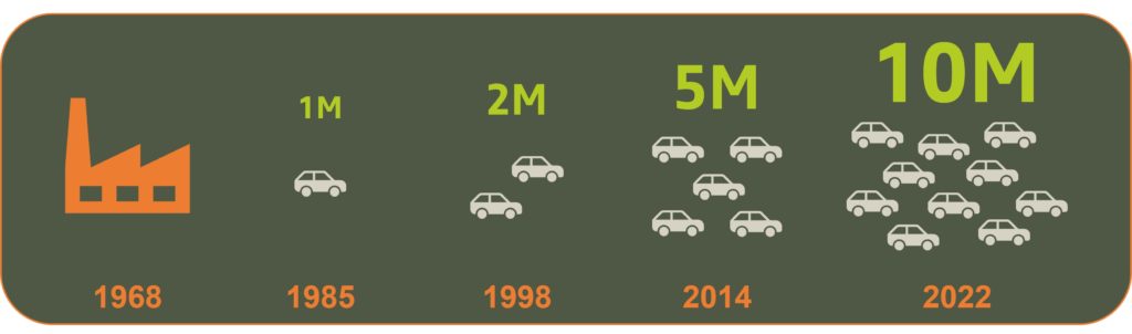 Poďme nazrieť trošku do histórie značky, ktorá nebola vždy tak úspešná ako dnes. Automobilka vznikla v roku 1968 v Rumunsku. Ako prvý vypustila na cesty Dacia model 1100. Po ňom nasledoval model 1300, ktorý sa vyrábal neuveriteľných 35 rokov. Počas tejto doby vzniklo z neho až 2,3 milióna kusov. Svoj prvý miliónty automobil vypustila z výroby až o 17 rokov neskôr a teda v roku 1985. Na hranicu dvoch miliónov vyrobených kusov sa dostala o ďalších trinásť rokov neskôr. Dovtedy bola Dacia v povedomí motoristov skôr ako nie príliš podarená značka. V roku 1999 si ju pod svoje krídla vzala skupina Renault, vďaka čomu si Dacia otvorila dvere na svetové trhy. Rok 2014 priniesol veľký úspech v podobe päťmiliónteho predaného automobilu a len o 8 rokov neskôr sa čísla predajov zdvojnásobili. Je to obrovský krok vpred pre značku, ktorá by pravdepodobne bez pomoci Renaultu zapadla do zabudnutia. Dnes ponúka až sedem modelov, medzi ktorými nájdeme rodinné automobily, SUV-čko, či elektromobil. V Európe sa teší veľkej popularite. Sme zvedaví, o koľko rokov sa Dacii podarí zdvojnásobiť aktuálny počet vyrobených kusov.