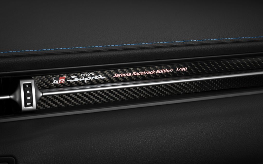 Názov Jarama dostala limitovaná Supra po španielskom okruhu, kde ju mimochodom po prvýkrát mohli naživo osedlať a zajazdiť si na nej novinári z celého sveta. Okruh Jarama meria 3,9 kilometra a jazdci môžu na nej svoje schopnosti ukázať až v 14-stich zákrutách. Práve tento okruh sa stal inšpiráciou pre vytvorenie novej limitky v podaní Toyoty GR Supra Jarama Racetrack.