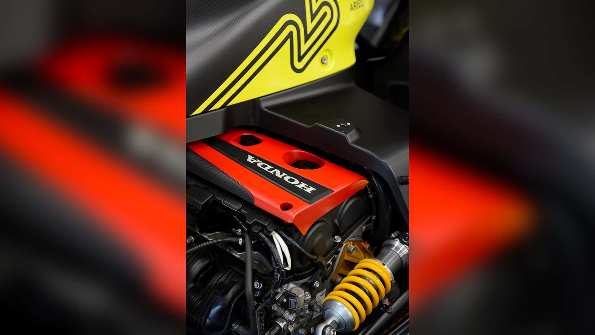 Model 4RR, predstavený tesne pred Goodwood Festivalom rýchlosti v roku 2025, je technickým skvostom – nie hračkou pre víkendových vodičov, ale zúrivým vzdorom fyzike. Pod krehkým rúrkovým priestorovým rámom sa nachádza preplňovaný 2,0-litrový štvorvalcový motor, prevzatý z Hondy Civic Type R. To, čo s ním Ariel robí, je však všetko, len nie civilné: motor bol rozsiahlo prepracovaný, olejový a palivový systém optimalizovaný, čoho výsledkom je neuveriteľných 525 koní a krútiaci moment 550 Nm.