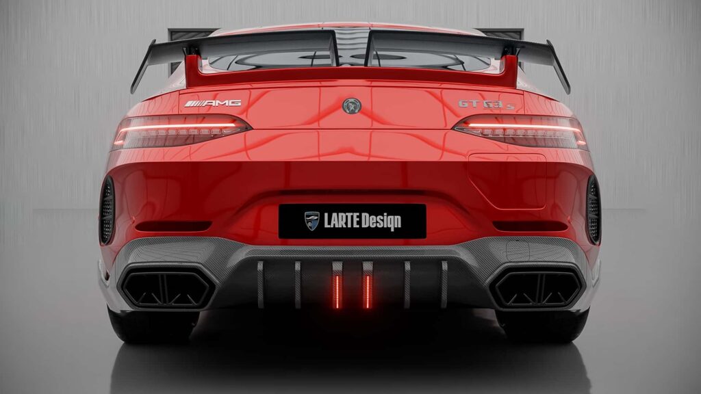 Zadná časť modelu AMG GT 63 bola tiež upravená, aby sa zdôraznila šírka a vizuálna prítomnosť vozidla. Základný tvar vozidla zostáva nezmenený.