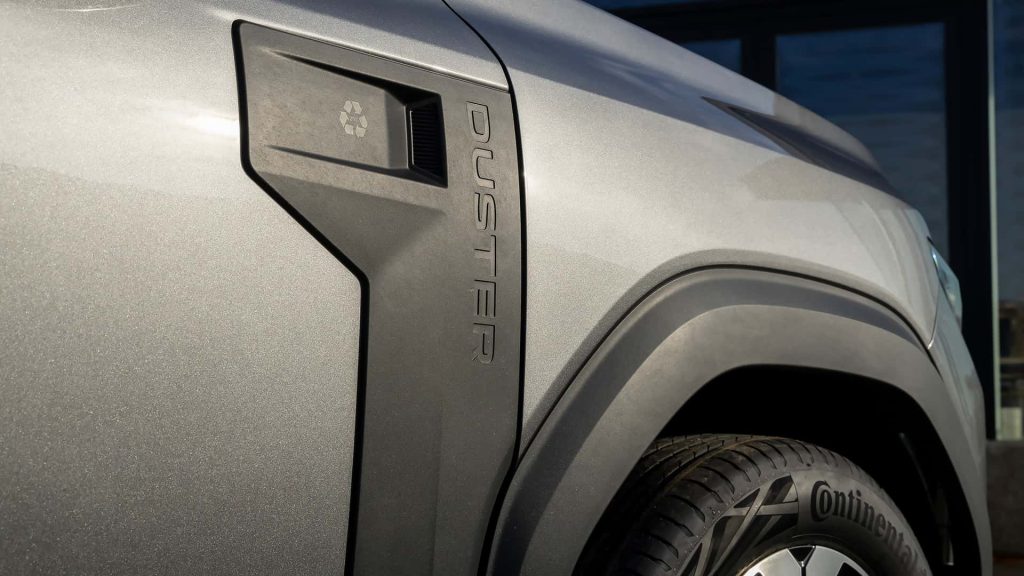 Obloženie blatníkov, bočné prahy a panel pod spätnými zrkadlami sú vyrobené z nového značkového materiálu Dacia s názvom „Starkle“. Je to rovnaký plastový povrch, aký bol na koncepčnom vozidle Manifesto z roku 2022 a je z 20 percent recyklovaný, doplnený o biele častice, ktoré mu dodávajú škvrnitý vzhľad, ktorý kontrastuje so zvyškom karosérie. Počíta sa tiež ako nenalakovaná časť, čo môže potenciálne znížiť náklady na výrobu a údržbu.
